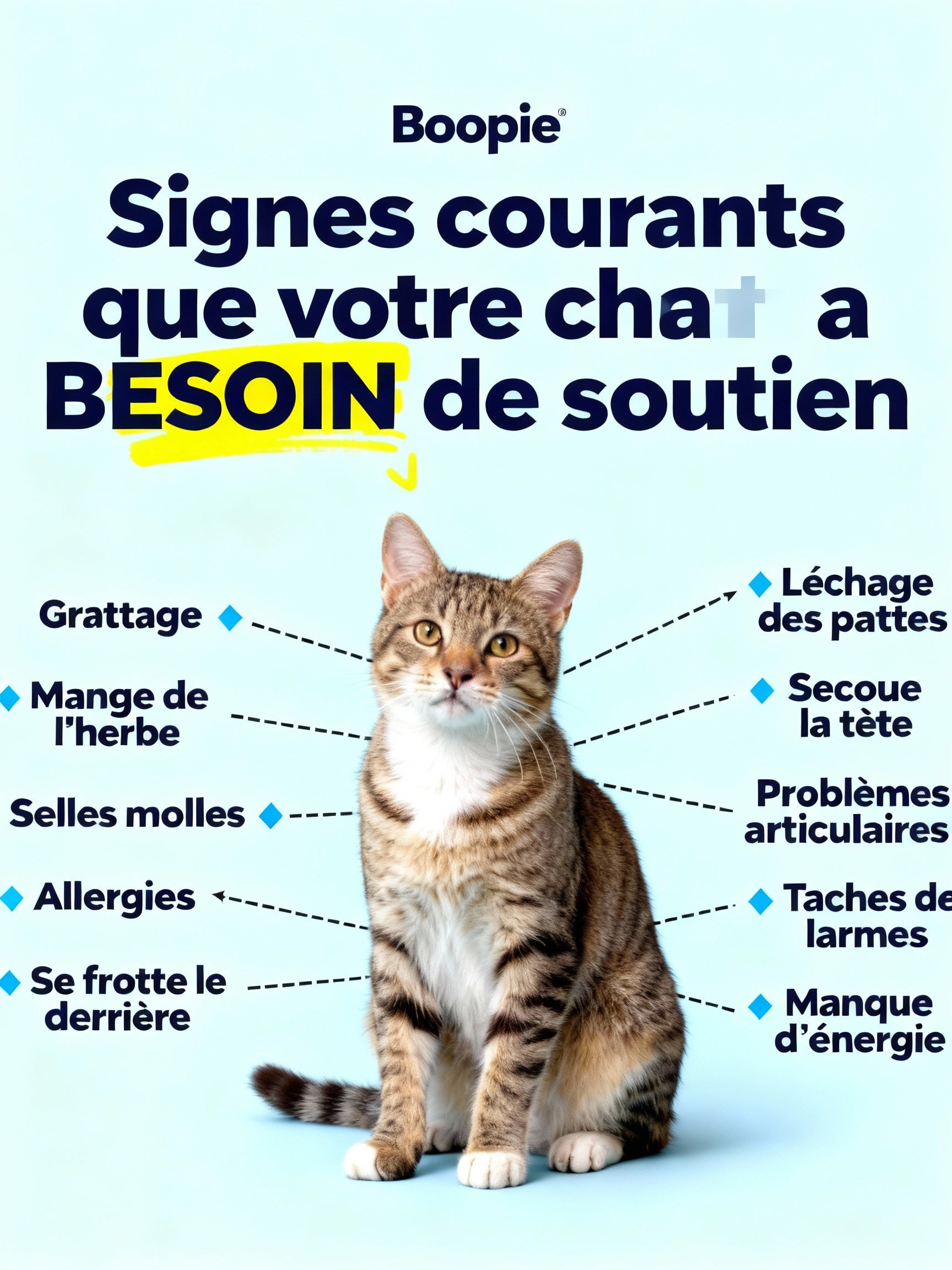"Mon chat Félix a 14 ans et il boitait depuis des mois. Il ne sautait plus sur le canapé, restait au sol et miaulait de douleur quand je le touchais. J'ai commencé Buppie sans trop y croire. Après une semaine, il a recommencé à grimper sur son arbre à chat. Maintenant il saute partout comme un jeune chat."